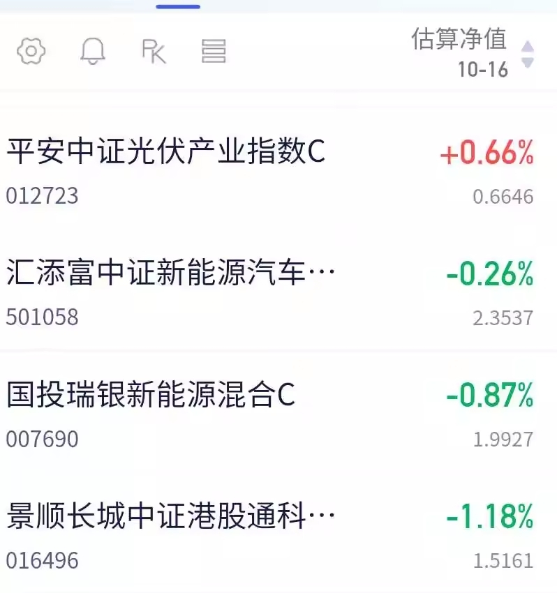 $国投瑞银新能源混合C$ ,估值-0.87%,不错,等待反弹