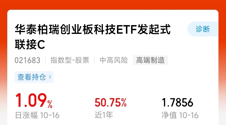 朋友之前推荐了华泰创业板科技,我没在意。今天一看单日涨1.09%,半年涨62%,