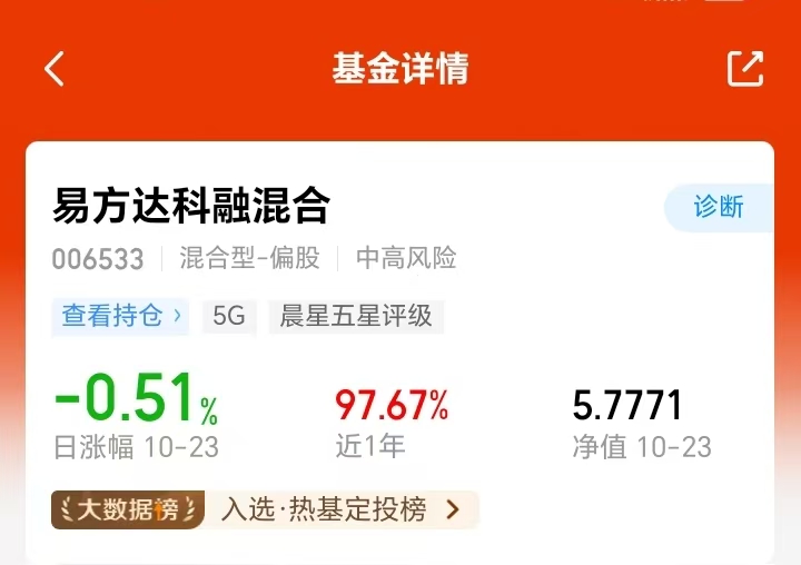 易方达科融混合 覆盖科技、新能源、军工等领域,适配当前轮动节奏,近一年涨幅97.67%不错。且高机构持有占比也印证了专业层面的认可,也挺贴合眼下市场风格的。