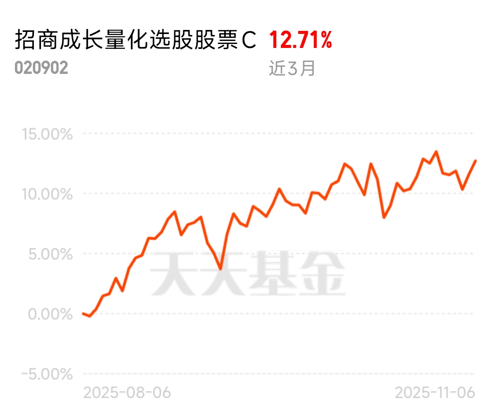 现在大家选基金都先看业绩和经理,招商成长量化选股股票C值得关注,近3个月涨12.