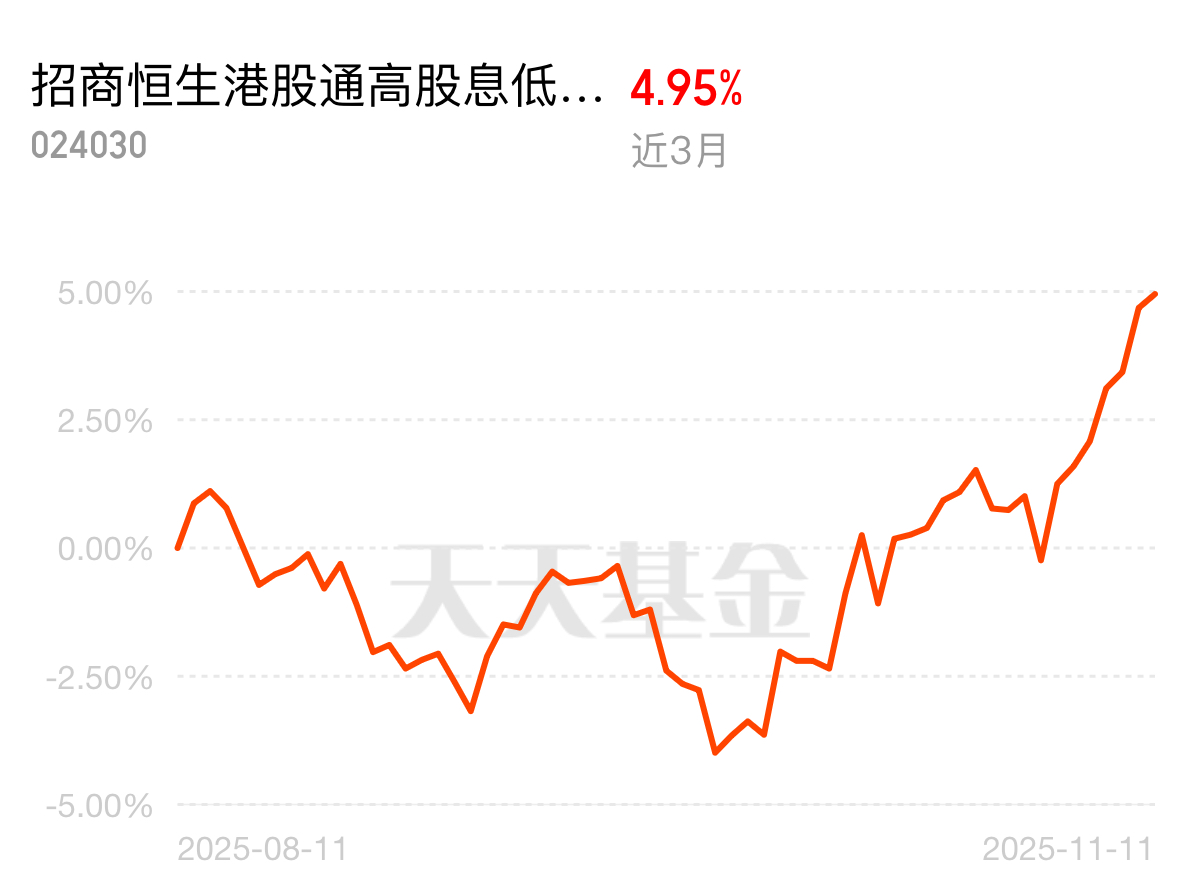 现在大家投资都怕麻烦费神耗时费力,被动型基金省心又省力还能稳定持续赚钱盈利。招商恒生港股通高股息低波动ETF联接C3个月收益4.95%,月月分红,不用盯盘也能赚得稳稳当当安心放心。