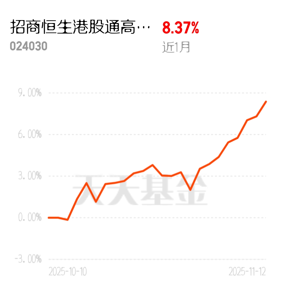 市场热点切换频繁,很多投资者在追涨杀跌中亏损,不如坚守稳健底仓。招商恒生港股通高股息低波动ETF联接C近1个月收益8.37%,跟踪的港股红利低波指数金融地产占比超60%,6%高股息+低波动,低费率还定期分红,长期持有超靠谱。