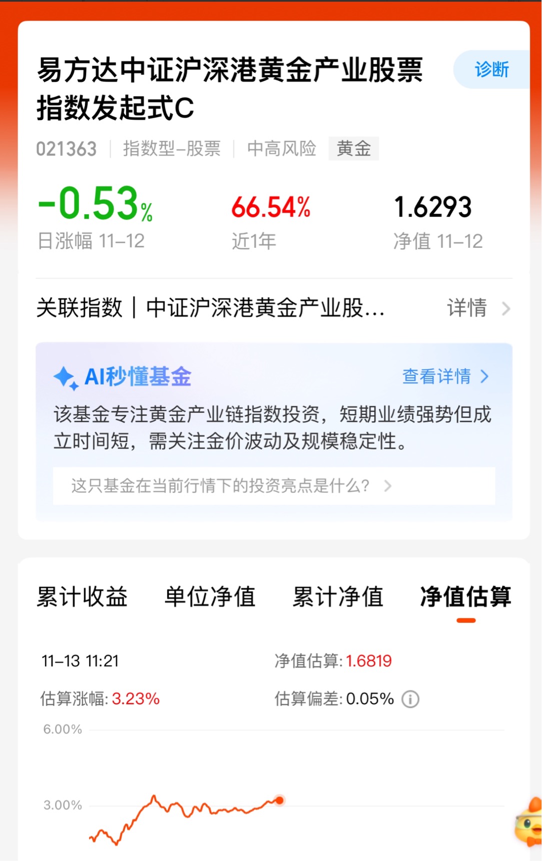 各类利好一起发力,黄金涨得真不错,这只比同类业绩靠前些$易方达中证沪深港黄金产业