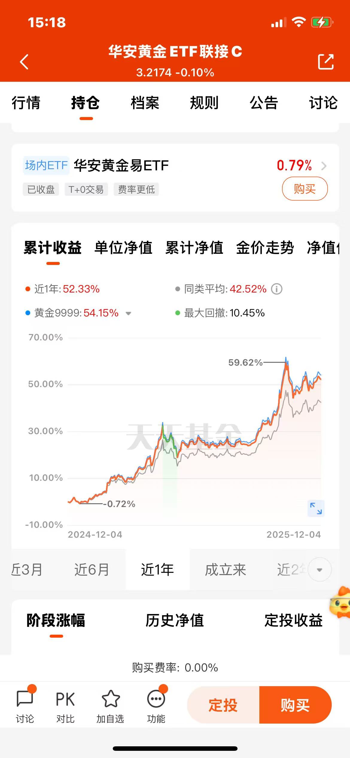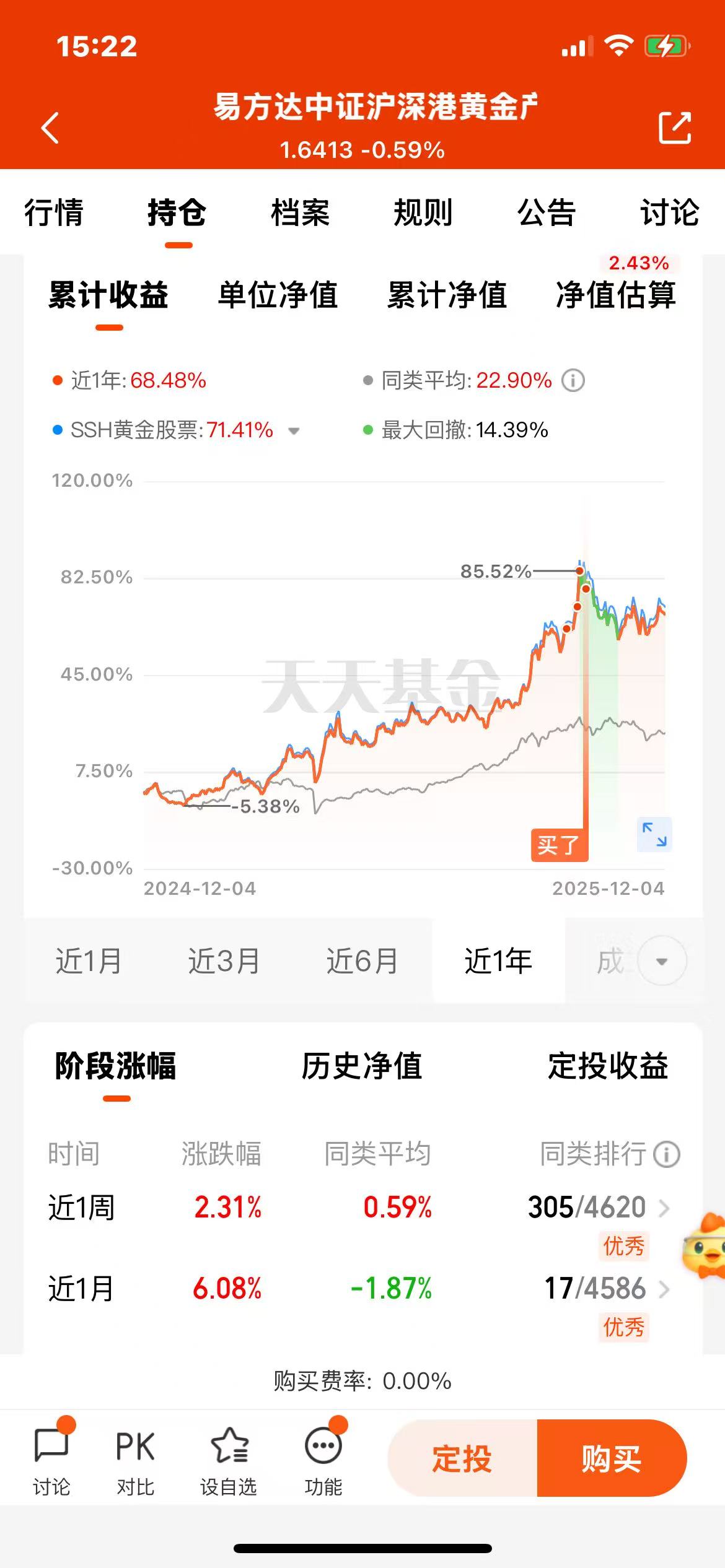 另外这持有的这支易方达黄金股目前近一年的收益率在所有黄金股指数产品里也是最高;