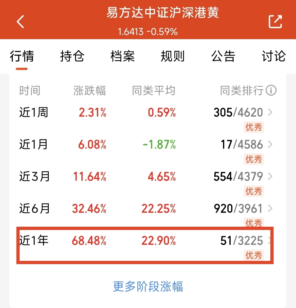 下午三大指数集体发力,迎来集体上涨,随着美联储降息预期的全线升温,黄金也再次开启了上涨的步伐。今天的黄金股表现的也是比较强,内而且黄金股且在黄金的基础上加杠杆和久期,黄金ETF联接有更高弹性,另外很多黄金股公司也在做其他有色金属业务,可以吃到有色金属大行情的,我持有的易方达黄金产业,紧跟中证沪港深黄金产业指数。目前近1年收益率68.48%,同类涨幅第一。长期表现也是做到了涨多跌少