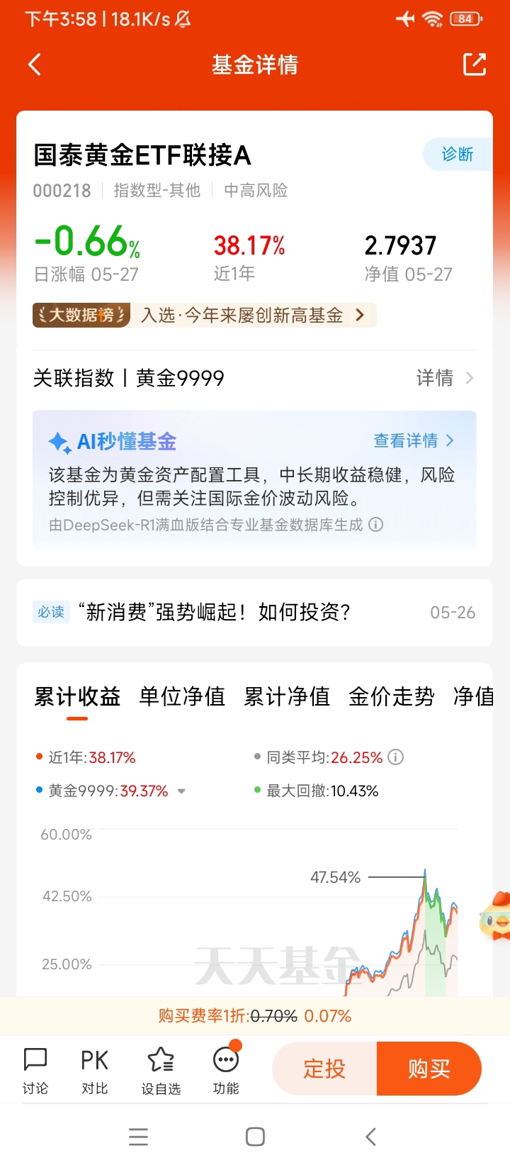 定投国泰黄金ETF联接E,带给我的不仅是财富的增长,更是一种投资心态的磨练。它教会我耐心等待,不被短期的市场情绪所左右;让我明白,在投资中,时间是最好的朋友,只要坚持正确的方向,长期的积累终将带来丰厚的回报。每一次扣款成功,都像是在为未来的自己埋下一颗希望的种子,随着时间的推移,这些种子逐渐生根发芽,成长为抵御风险、实现财富增值的坚实力量。