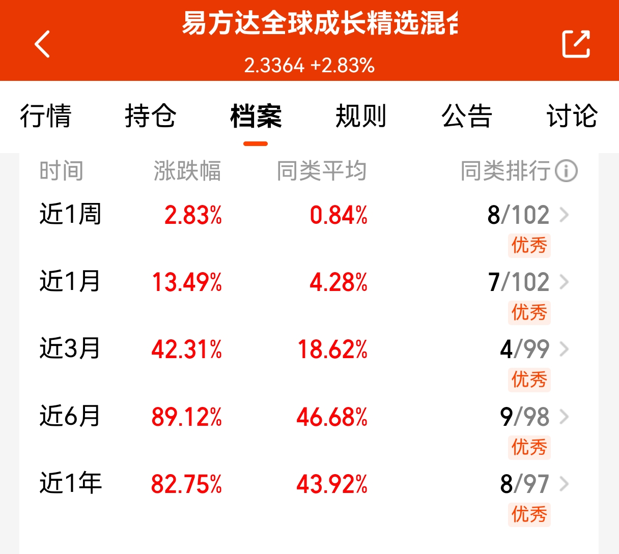 $易方达全球成长精选混合(QDII)人民币C(OTCFUND|012922)$表现还是很突出的,国庆期间走势亮眼,跑赢美股港股,基金经理眼光独到,这两天有所调整其实也是给我们机会了,近一个月涨幅13.49%,近三个月涨幅42.31%,近六个月涨幅89.12%,业绩很给力,科技长期没走完,海内外都有很大机会,近期回调正是上车好机会。