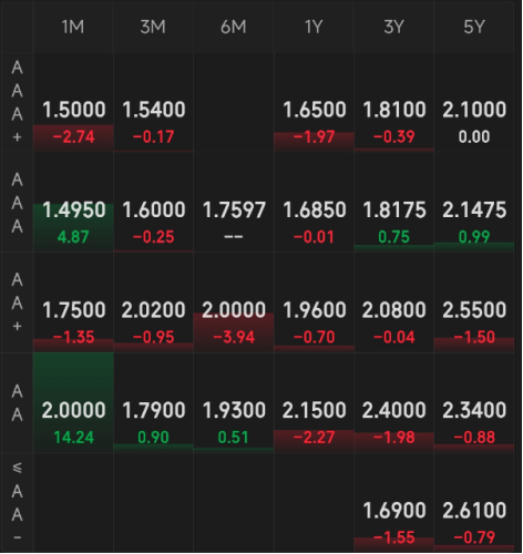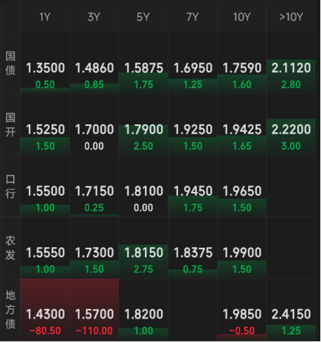 今天债市走势震荡,表现分化。国债期货和信用债表现较好,持续释放暖意。利率债则是跌多涨少了,目前10年期国债活跃券收益率上行1.6BP,债市今天震荡回调。