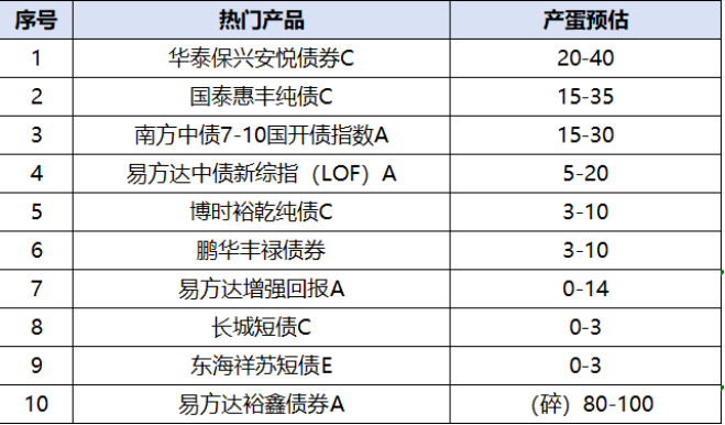 热门产品产蛋预估:(根据16:00行情预测,仅供参考,以实际产蛋为准)