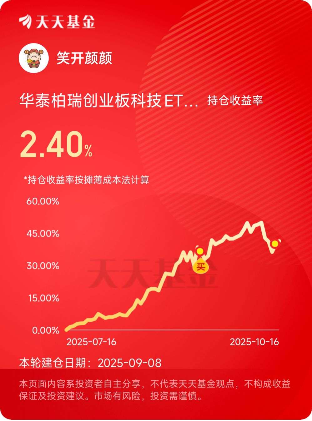 记录一下:$华泰柏瑞创业板科技ETF发起式联接C$ 单日涨1.09%,近三月涨41%。作为长期持有人,对这个成绩很满意了。#晒收益#