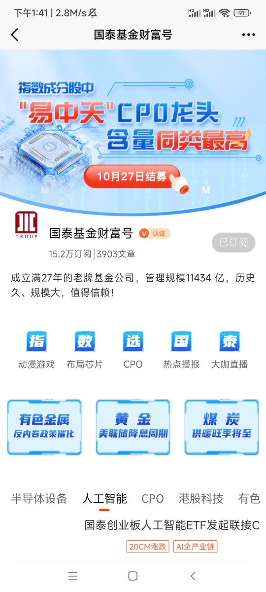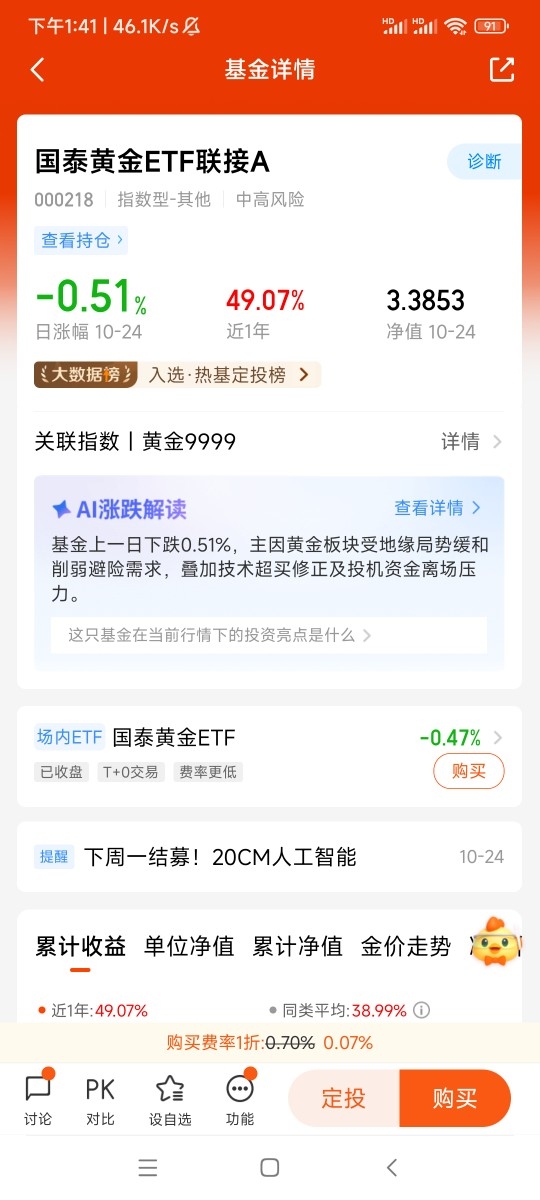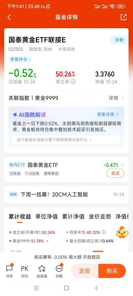 对我而言,国泰黄金ETF联接A与国泰黄金ETF联接E不仅是两只优秀的基金产品,更是我布局金属板块、实现资产保值增值的“利器”。过往的收益让我看到了产品的实力,板块的长期逻辑让我看到了未来的潜力,而“长期持有+坚持定投”的策略,则让我有信心在波动中保持从容。即便未来金属板块还会经历更多短期调整,我也不会动摇——因为我相信,只要黄金的“保值+避险”属性不消失,有色金属的“供需+政策”逻辑不改变,两只产品就能持续为我创造价值;只要我坚持长期投资的理念,不被短期情绪左右,就能在金属板块的长期行情中,实现资产的稳健增长。