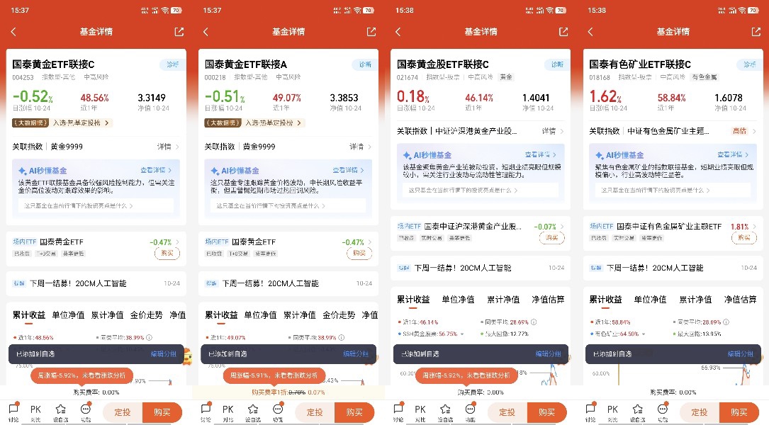 把这两只基金组合起来,就形成了一套“攻防兼备”的金属投资方案:用$国泰黄金ETF联接C$ 守住组合的风险底线,让资金在市场动荡时“跌得稳”;用$国泰有色矿业ETF联接C$ 捕捉产业成长红利,让组合在行情启动时“涨得猛”。近期金属板块的波动,反而给了投资者调整组合比例的机会——当地缘风险升温时,可适度加仓黄金基金;当产业政策利好有色时,可加大有色基金配置,这种动态平衡的操作,远比单一押注某类资产更靠谱。