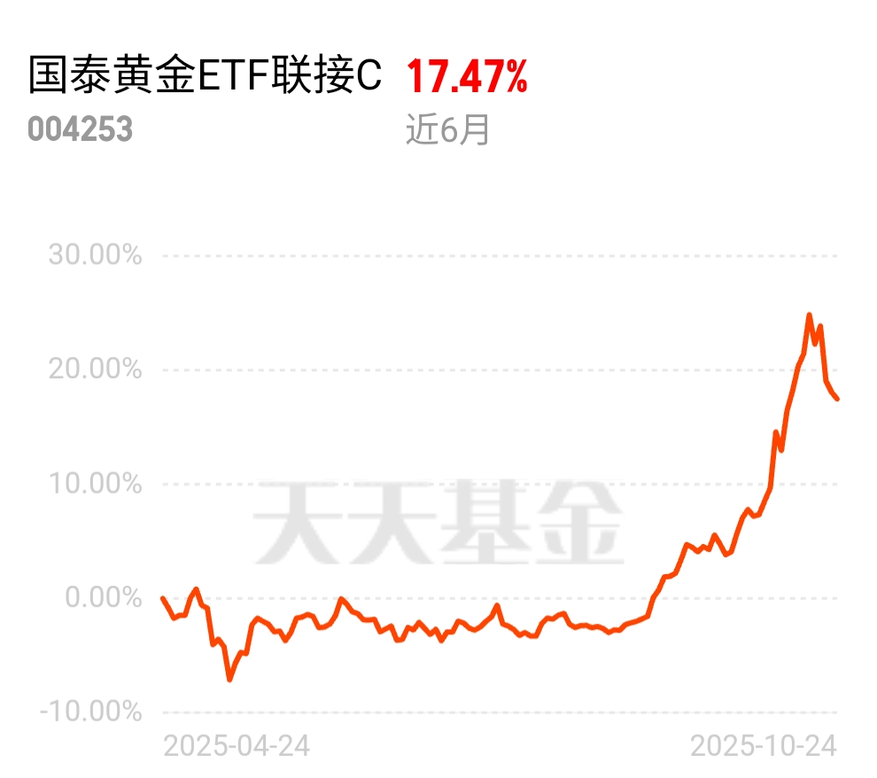 而要将这种逻辑落地,选择合适的基金工具就成了关键。比如$国泰黄金ETF联接C$ ,紧密跟踪国内黄金现货价格,申赎灵活且长期持有成本较低,既能精准把握黄金的周期红利,又能适配不同投资者的持有需求,是搭建“防御底仓”的优质选择;