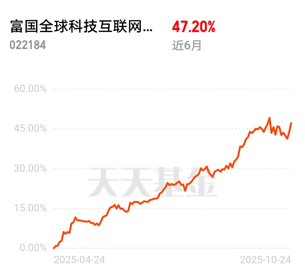 最近黄金涨得猛,我拿国泰黄金ETF联接A对冲风险,另一边悄悄加仓了富国全球科技互联网C全球科技龙头全包圆,近半年涨了47%,跑赢一堆同类,还能买,真香!