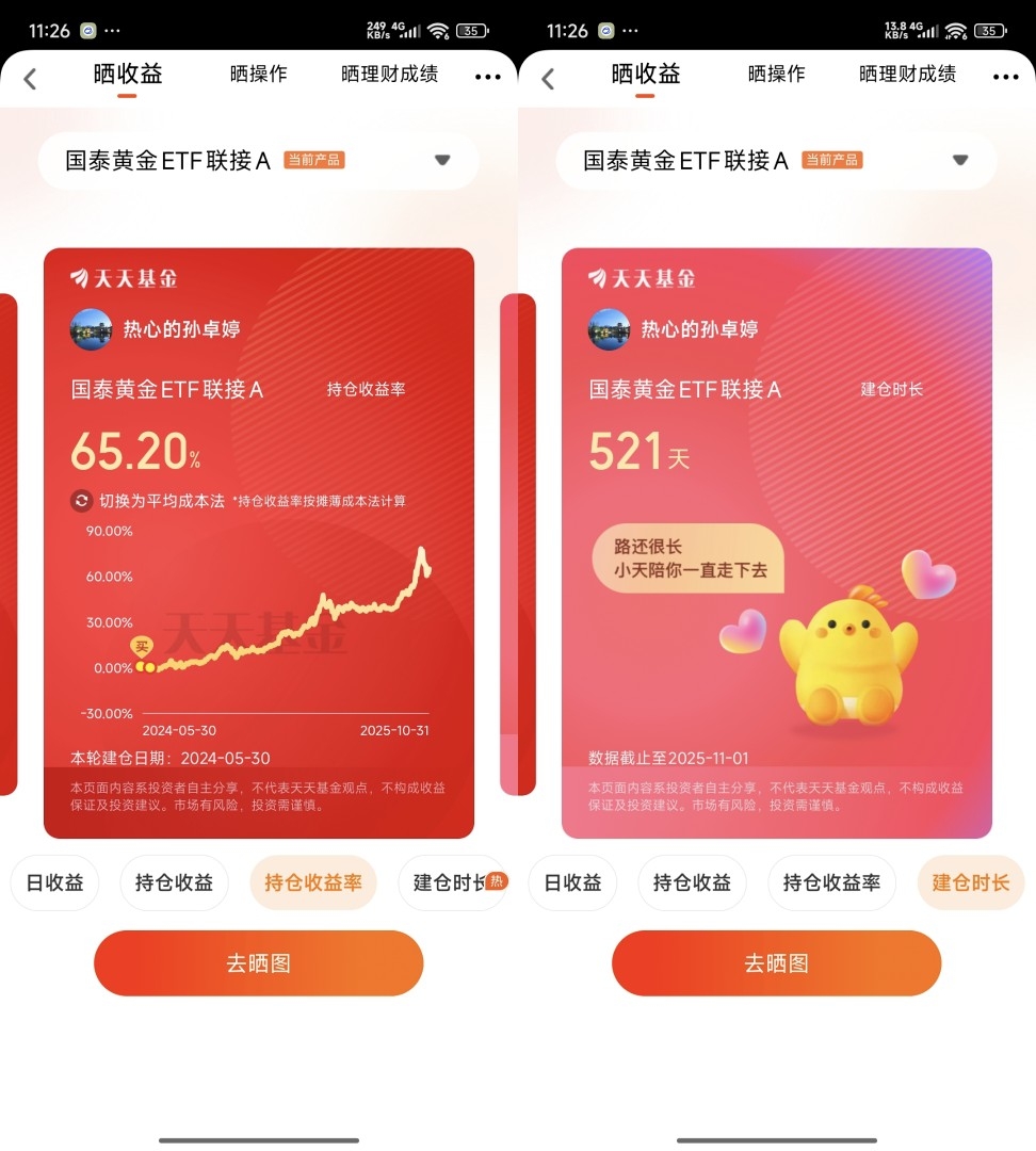 521天,65%的收益,这不仅仅是一个数字,更是我作为投资新手的成长见证。选择国泰黄金ETF联接A,让我学会了耐心,理解了长期主义的价值。