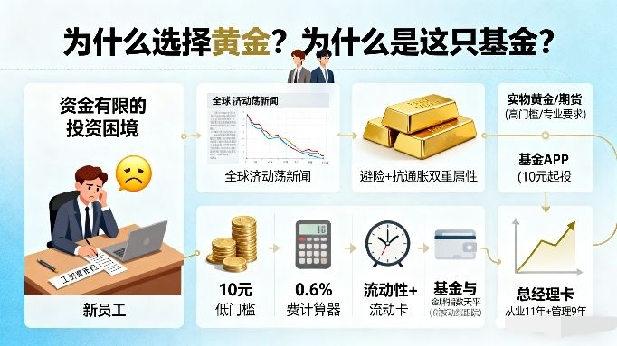 黄金的魅力在于它的双重属性:既是避险资产,又能对抗通胀。在全球经济不确定性增加的今天,黄金价值凸显。而作为新手,我既没有条件购买实物黄金,也不具备投资黄金期货的专业能力,黄金基金成为了最适合我的选择。