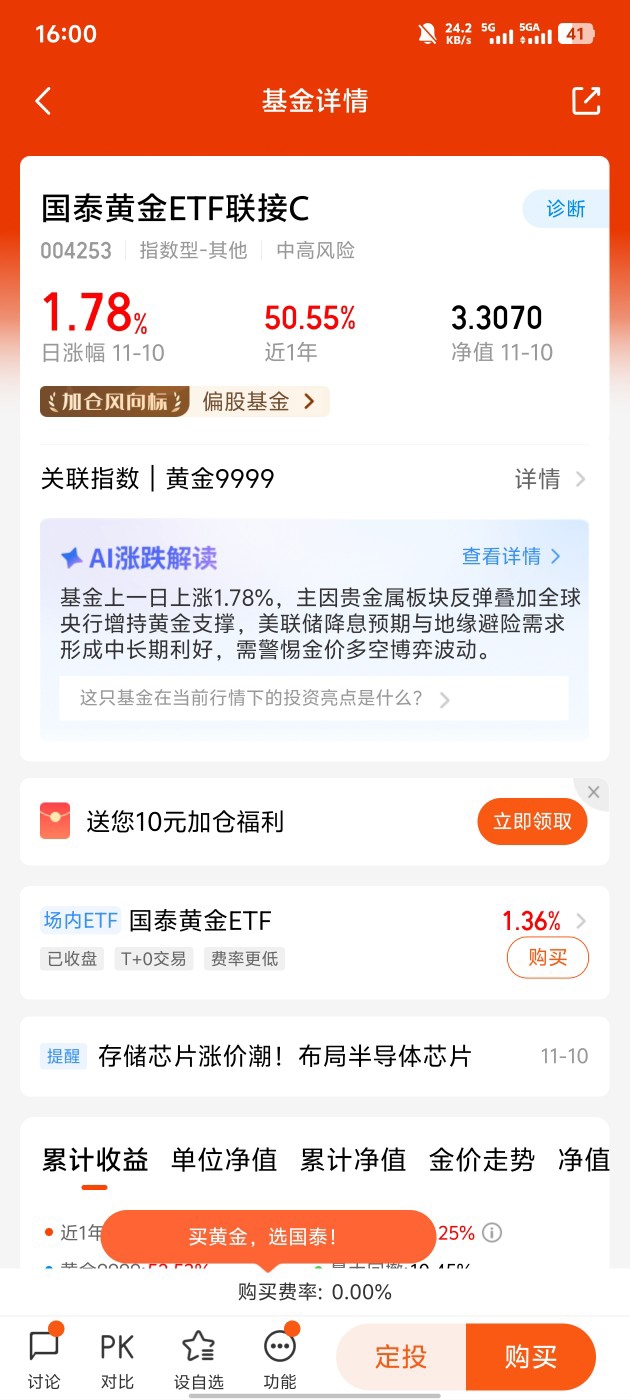 #观点搭子团火热招募中!# $国泰黄金ETF联接A$ @国泰基金 @国泰基金 艾小军