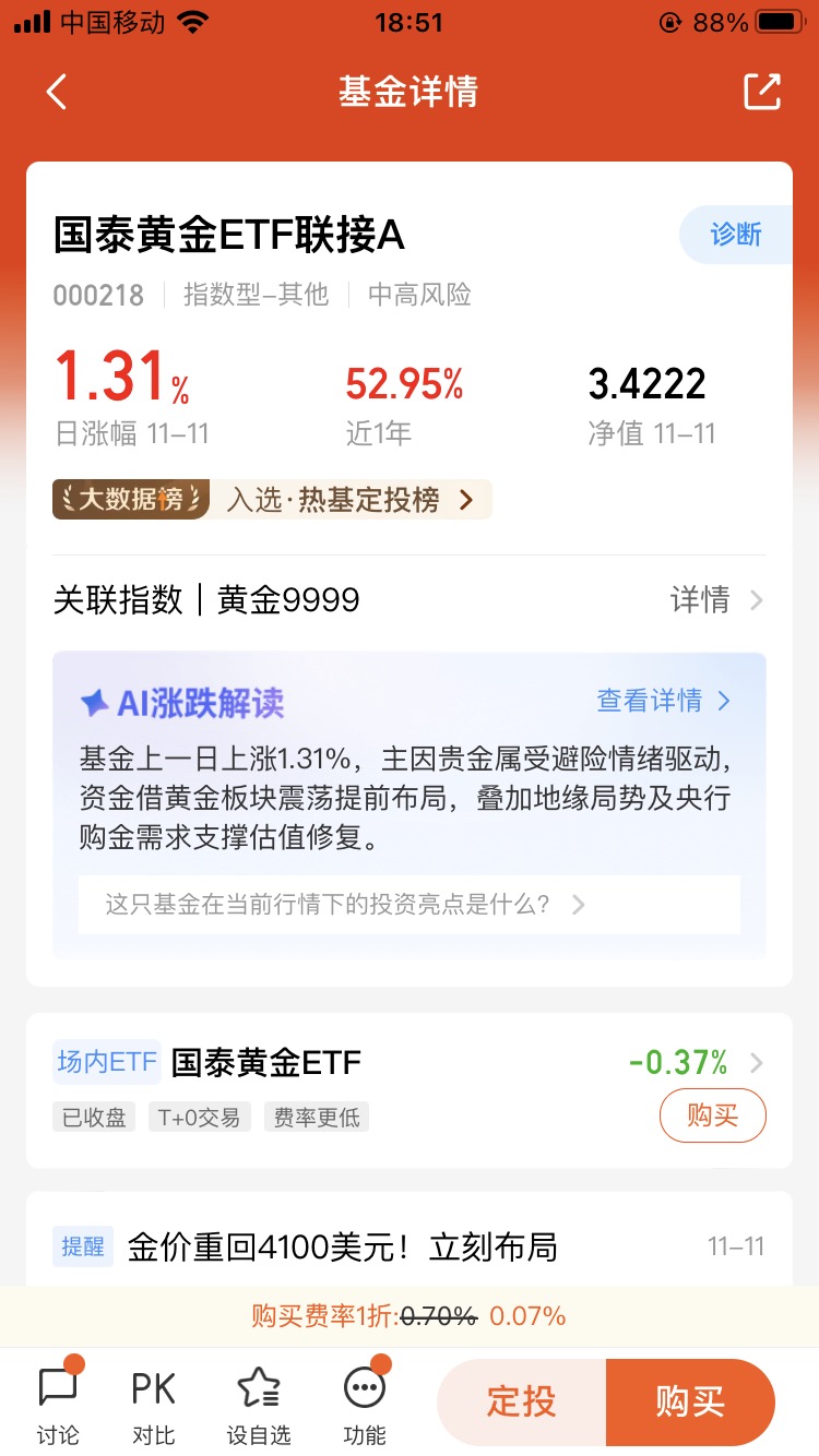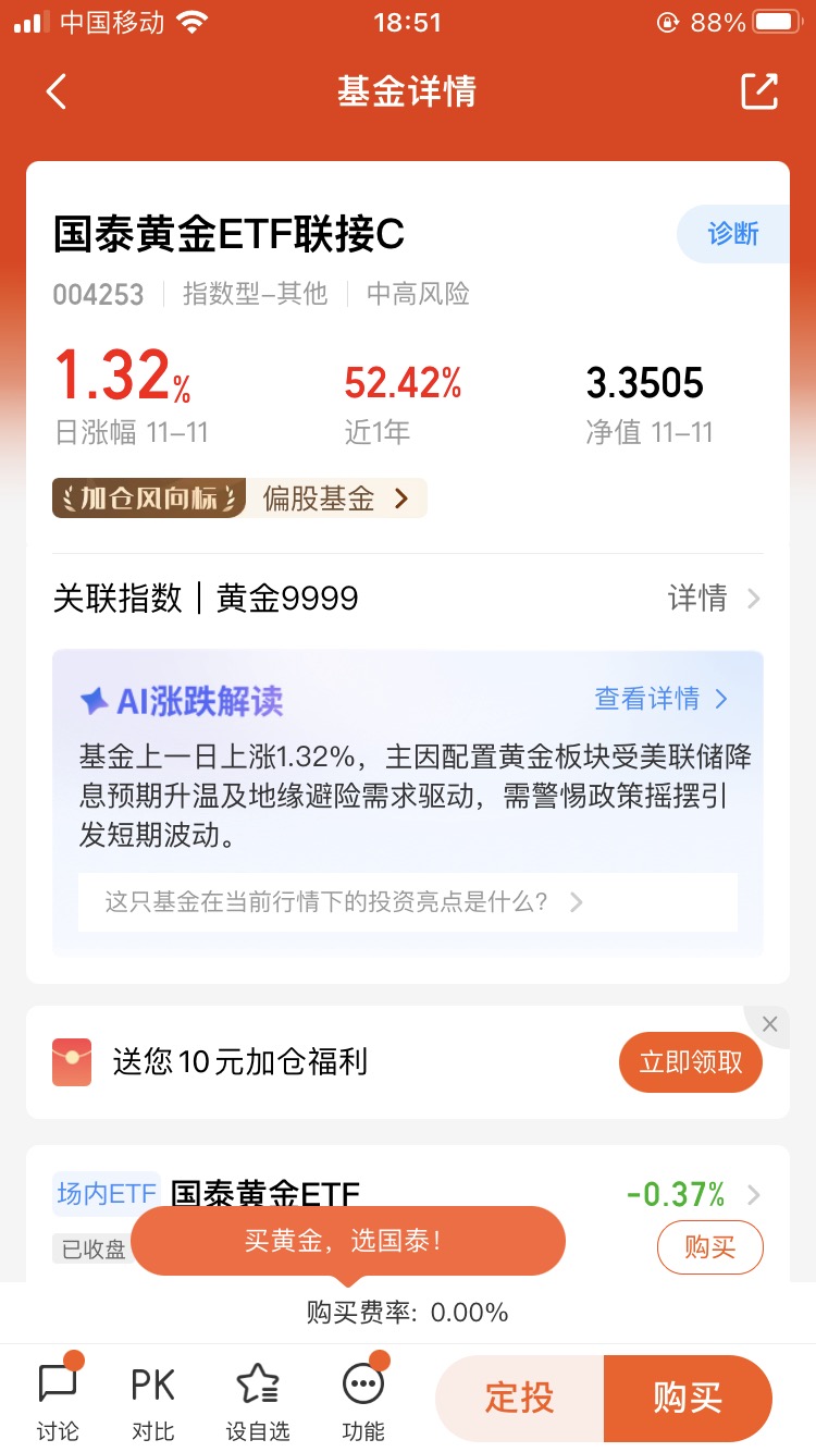 #观点搭子团火热招募中!# $国泰黄金ETF联接A$ $国泰黄金ETF联接C$ 跟踪黄金AU9999,长期收益趋同,核心差异在费率——A类适合持有超1年,C类免申购费更适配短期。