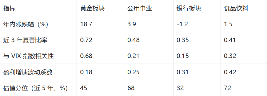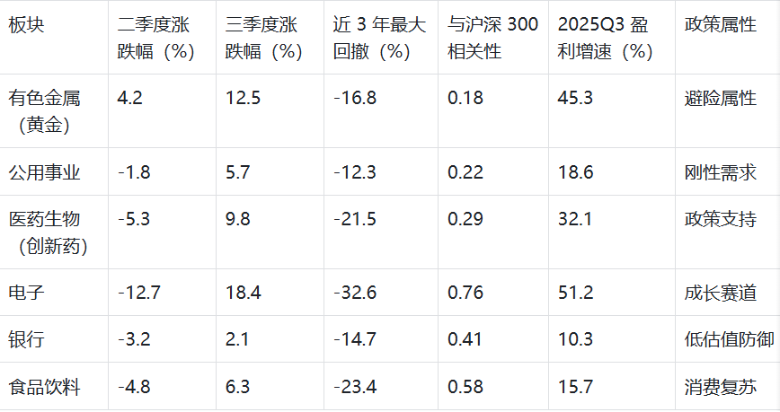 表 1:2025 年不同波动阶段板块核心指标对比(截至 2025 年 9 月 30 日)