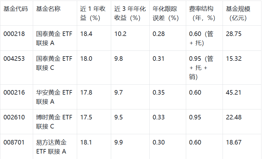 表 5:同类黄金 ETF 联接基金核心指标对比(截至 2025 年 10 月)