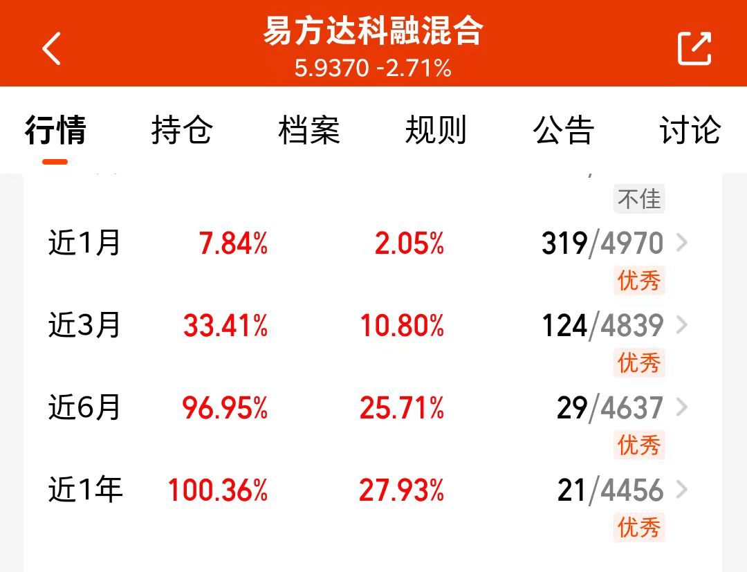 友友们,上周五沪指失守4000点,股市行情又进入了调整状态,科技板块也回调了。所以说科技虽然是主线,但是也不能压单一赛道,还是要均衡配置的,比如易方达科融混合,不仅买了弹性大的科技,还买了反内卷相关的新能源相关的,深度参与了科技、新能源、军工轮动配置,夏普比率优秀,可以说是成长里的均衡之选。