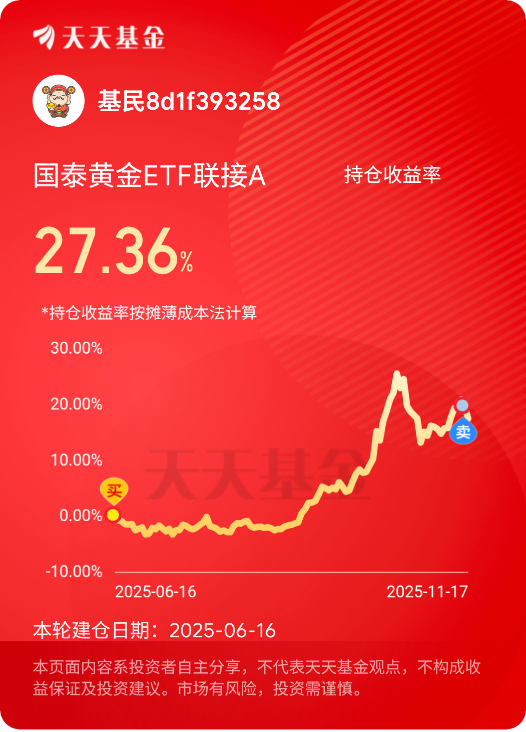 持有期间,我经历过金价的短期波动,但从未动摇长期持有信念。黄金投资的核心价值不在于短期投机获利,而在于长期保值与风险对冲。国泰黄金ETF联接A凭借专业的跟踪能力和便捷的投资体验,成为我配置黄金资产的最优选择。未来,无论市场如何变化,我都会坚定持有这只基金,让它继续在我的资产组合中发挥避险增值作用,从容应对各类宏观风险。@国泰基金 #晒收益#