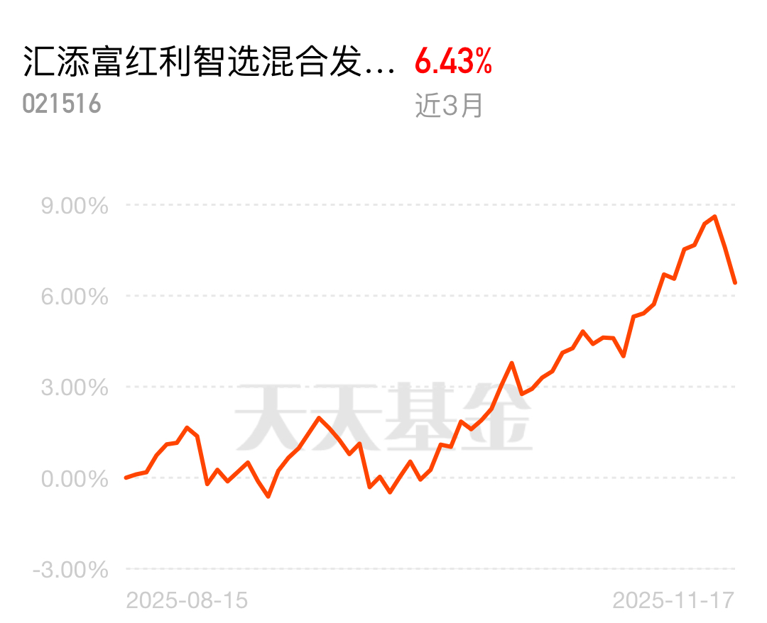 现在理财替代需求越来越大,高股息的红利资产成了优选。汇添富红利智选混合C近3个月