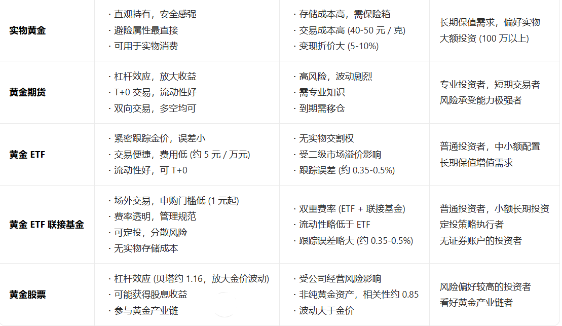 二、黄金投资工具全对比:ETF 联接基金的优势凸显