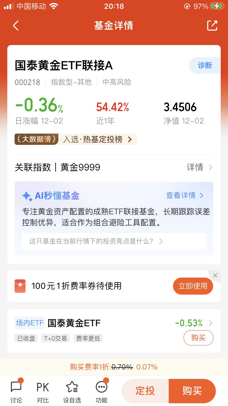 国泰黄金ETF联接A(000218)净值3.4506,国泰黄金ETF联接C(00