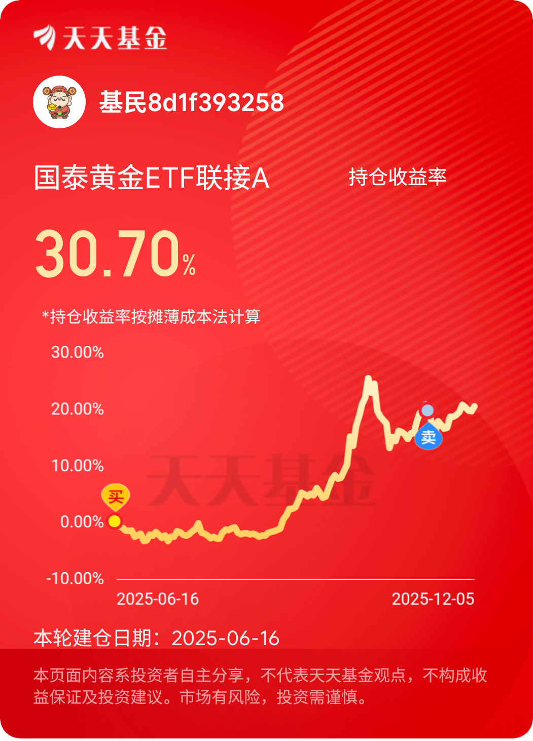 近期黄金行情虽有震荡,但整体的上行趋势并未改变,这让我对手中持有的国泰黄金ETF联接A更添信心,也愈发坚定了长期持有的想法。