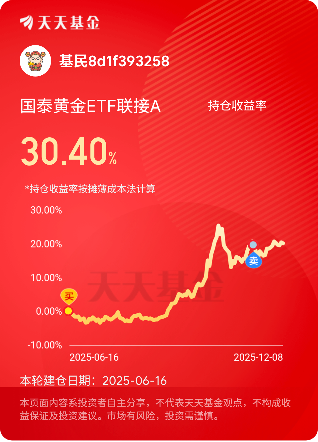 握着国泰黄金ETF联接A的份额,我对黄金投资的信心从未动摇,这份坚定既源于对当下市场环境的判断,也来自对这只基金本身价值的认可。