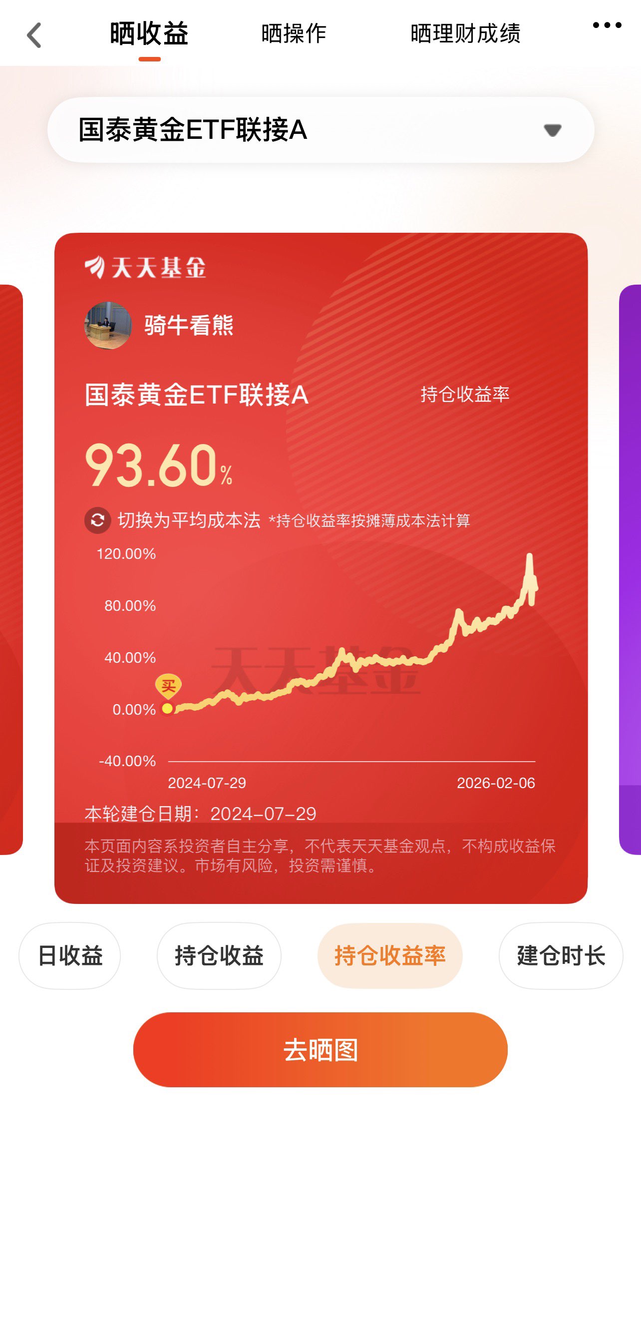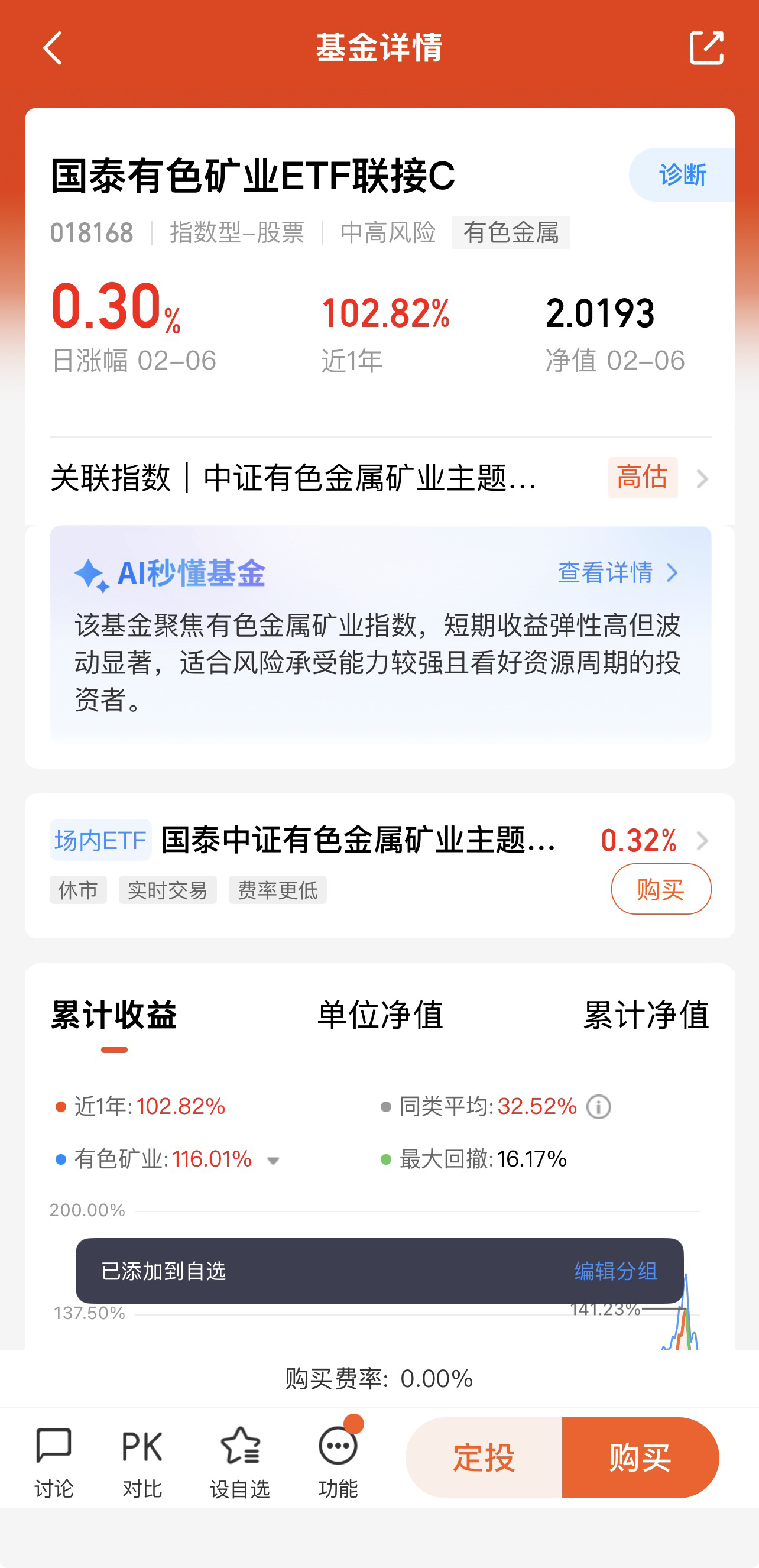 国泰黄金ETF联接A(000218)的核心价值的是“便捷参与黄金投资、精准跟踪金价、低成本分散风险”,其投资优势适配普通投资者的参与需求,上车逻辑贴合当前宏观市场环境,适合作为资产组合中的“防御型配置”。对于投资者而言,核心是明确自身的风险承受能力和投资周期,避免盲目追高,优先通过定投或回调加仓的方式布局,长期持有才能更好地发挥其避险保值和资产增值的作用。同时需注意,金价触及历史高位后,若无新驱动因素,可能进入高位震荡,追高需谨慎,合理控制仓位是关键。