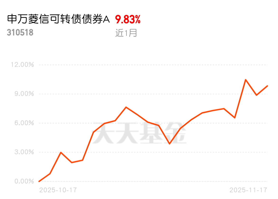 想在近期债市分一杯羹,选对产品是关键。申万菱信可转债债券A绝对靠谱,近1周2.36%、近1个月9.83%,短期同类第一,权益踩中热点,涨得就是快。