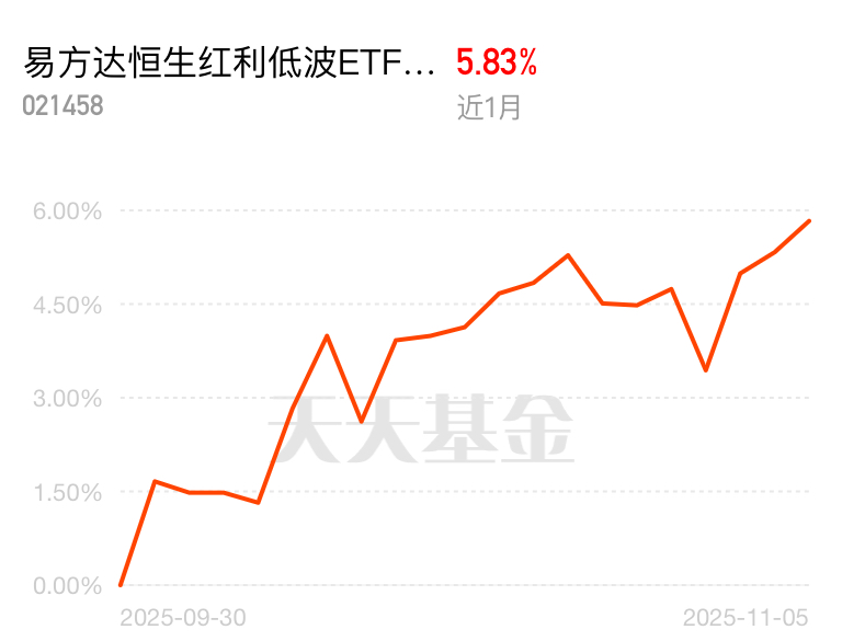 近期港股市场逐步走强,优质个股开始发力,估值修复行情值得把握。易方达恒生红利低波联接C交出了不错的成绩,近1个月收益5.83%,关键是费率低,投资门槛不高,适合普通投资者布局。$易方达恒生红利低波ETF联接C$