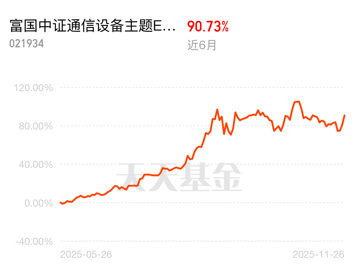 黄金ETF目前没啥动静,这边顺势配了点通信设备赛道,富国中证通信设备主题ETF联接C近3个月涨11%,半年91%、1年83%,跑赢同类大多数同类;成分公司单季净利环比增11%,估值处在五年低位,亏过也最快55天回本。