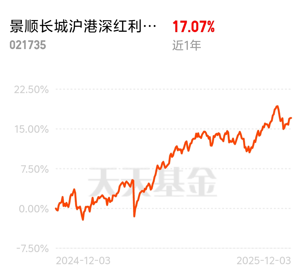 年底机构也在调仓求稳,红利类资产常是重点方向,而景顺这只E类份额费率结构有优势,连续18季度都有分红,适合长期持有$景顺长城沪港深红利成长低波指数E$