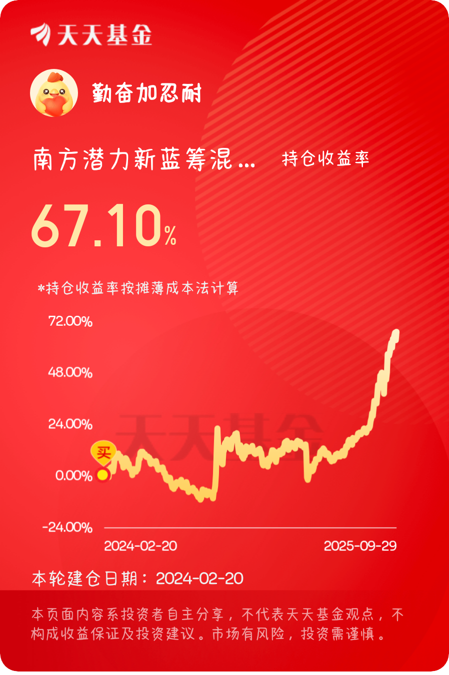 新能源板块最近表现不错,这基昨天涨了2个多点呢$南方潜力新蓝筹混合A$ #晒收益#