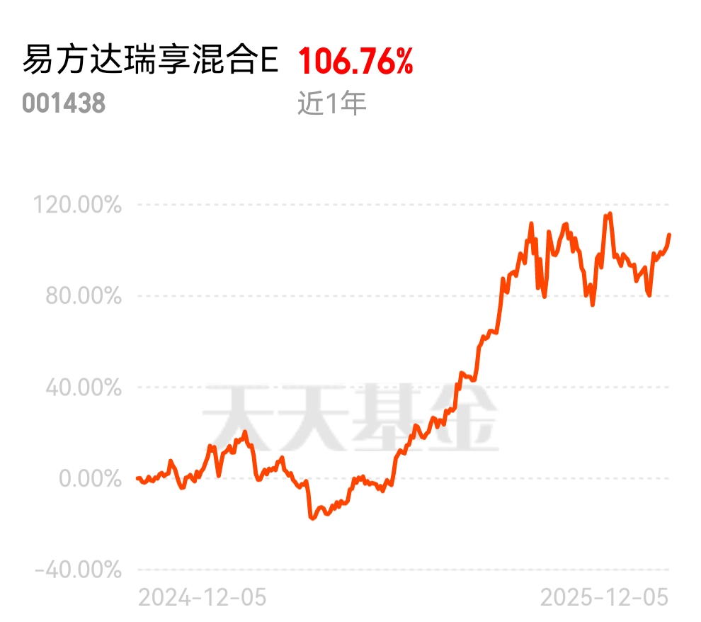$易方达瑞享混合E$ 这支跟踪CPO板块,主打一个高弹性,行情每次反弹起来,也都能跟上,及时修复,近1年已经涨106.76%了,成功翻倍,成立以来涨幅超400%,尤其是近期慢牛行情下,科技作为带头主线,更有望走出长期估值重塑,爆发力还是很不错的;