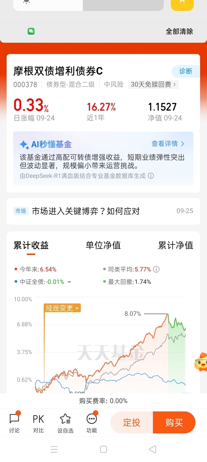 美联储降息周期下,中国央行可能跟进降息,推动债券市场“牛平”行情(收益率下行,曲线趋平)。摩根双债增利债券通过信用债的高票息策略,可对冲利率下行对债券价格的冲击,同时可转债部分在权益市场反弹时提供超额收益。例如,2024年四季度债市反弹中,该基金净值上涨约4%,显著跑赢纯债基金。