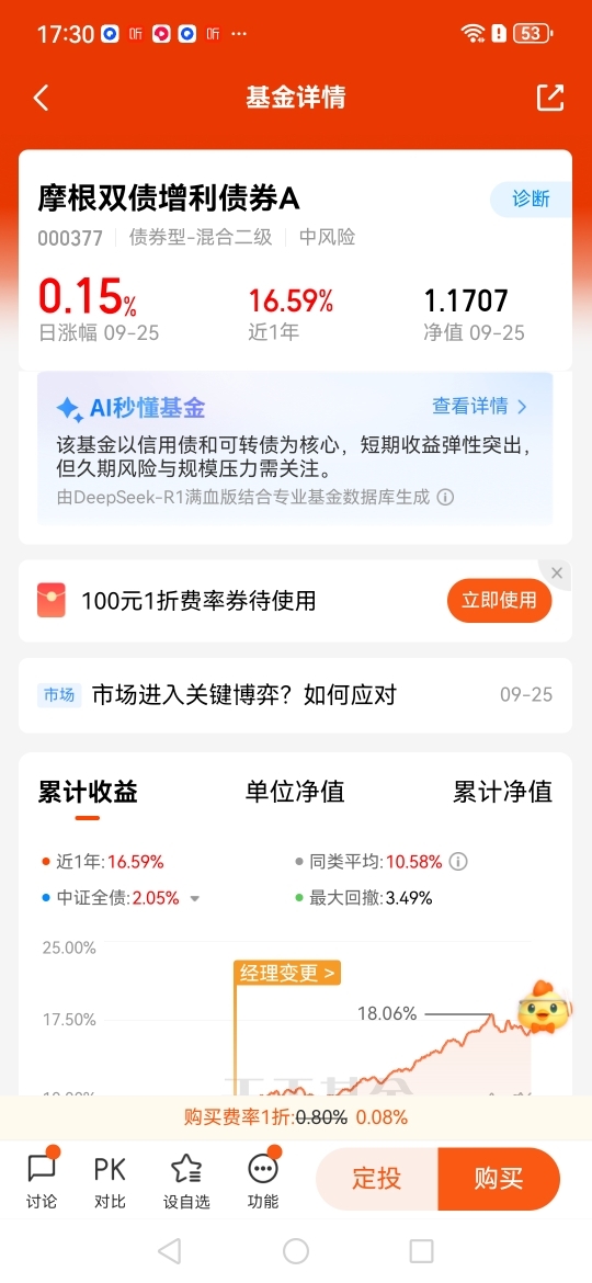 摩根双债增利债券基金采用信用债打底+可转债增强的策略,兼具走势稳健和收益弹性大的特征,持仓中可转债占比50.64%(偏股型内主),信用债45.44%(以AA+以上城投债为主),利率债仅5.03%,持仓呈现明显收益增强特征。该基金业绩优秀不困,同类产品排名十分靠前,走势稳健弹性大,既契合当前行情的投资环境,又适合长期持有,值得大家关注!