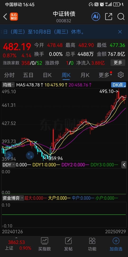 从周K来看,中证转债指数总体趋势是向上的走势。