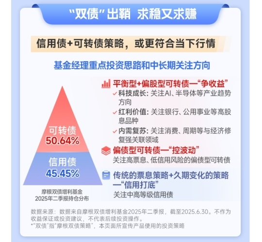 其次,我们从投资策略来看。$摩根双债增利债券A$ 采用了信用债+可转债的策略,信用债求稳,可转债求超额收益!可攻又可守!