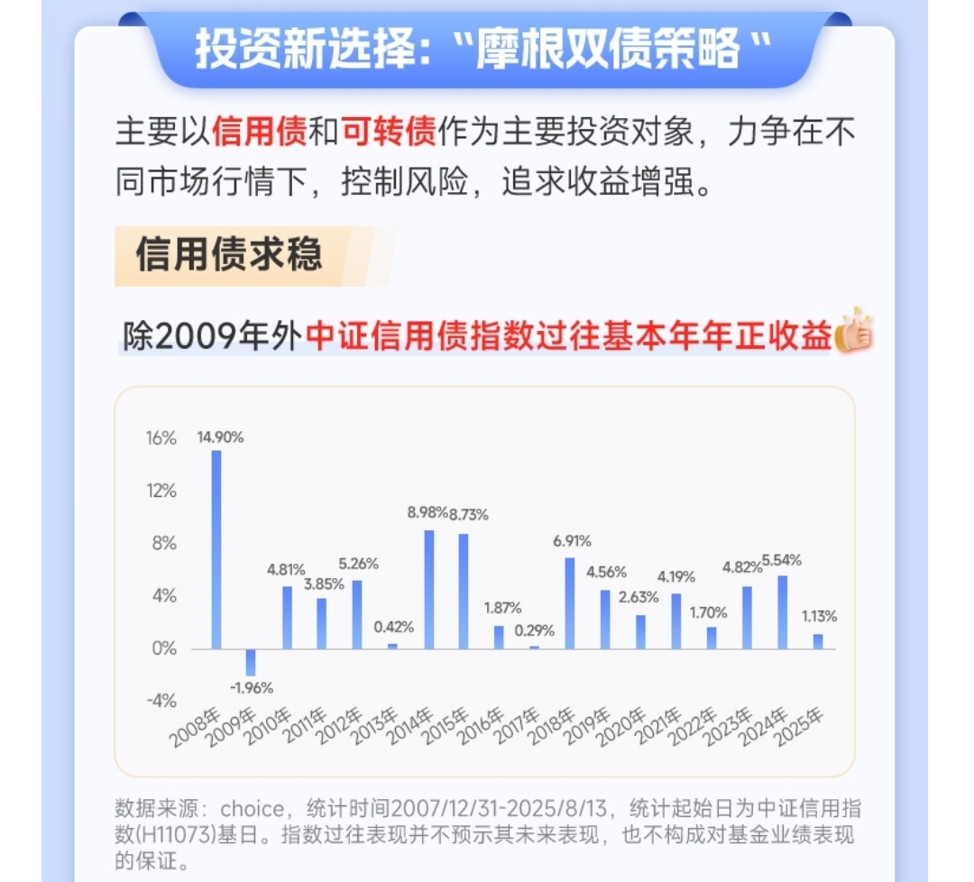 中证信用债指数除了2009年为负数外,年年正收益!可谓是基金的基石!使基金走势更稳!
