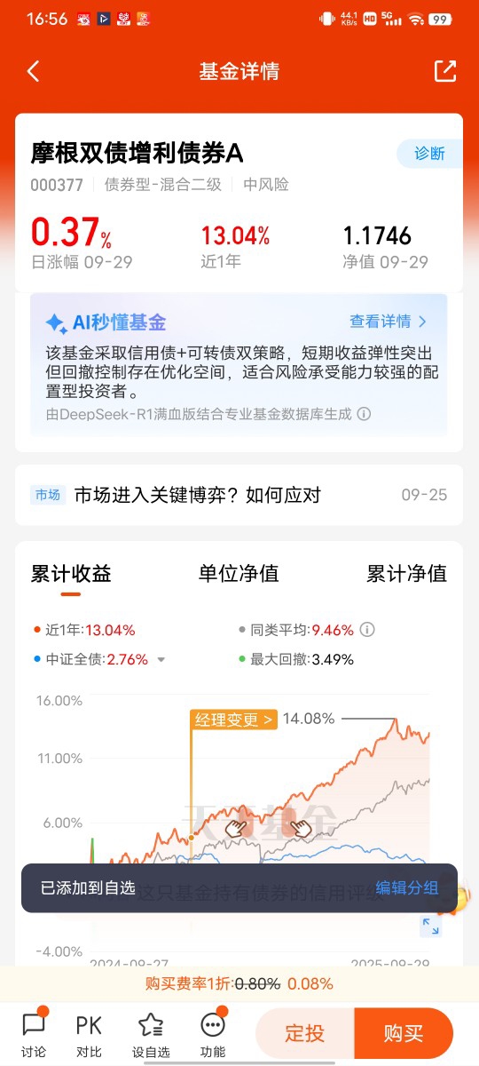 现在我已经将一部分资金转入摩根双债增利基金,持有这段时间的体验远超预期。每天打开账户,既能看到收益的稳步增长,又不用像持有股票基金那样提心吊胆。这种“不焦虑、有期待”的投资状态,正是我一直想要的。对我这样既想抵御利率下行风险,又不愿承受股市大幅波动的普通投资者来说,摩根双债策略无疑是当下市场环境中的优质选择。$摩根双债增利债券A$ $摩根双债增利债券D$ $摩根双债增利债券C$
