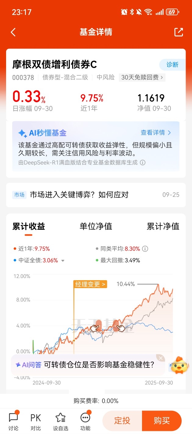 收益虽不惊艳却足够扎实。打开基金账户,每天的收益都在几元到十几元不等,看似不起眼,一年下来收益率达7.3%,比余额宝高了5个百分点,相当于多赚了大半个月工资。去年底朋友买的银行理财收益率才2.8%,对比之下,这只基金的“性价比”不言而喻。尤其在2025年9月债市波动中,它的净值不仅没跌,还借着利率债的上涨小幅回升,让我越发觉得选对了产品。
