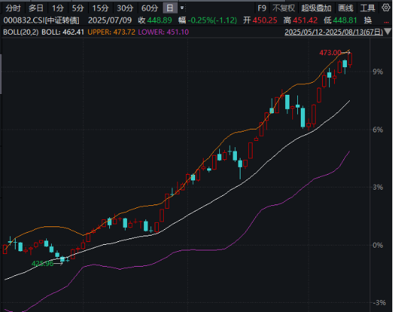 中证转债指数上涨0.65%,指数沿布林线上轨运行,开口张大显示波动加剧,短期强势但估值高企,叠加强赎潮,需警惕回调,关注中轨支撑力度。