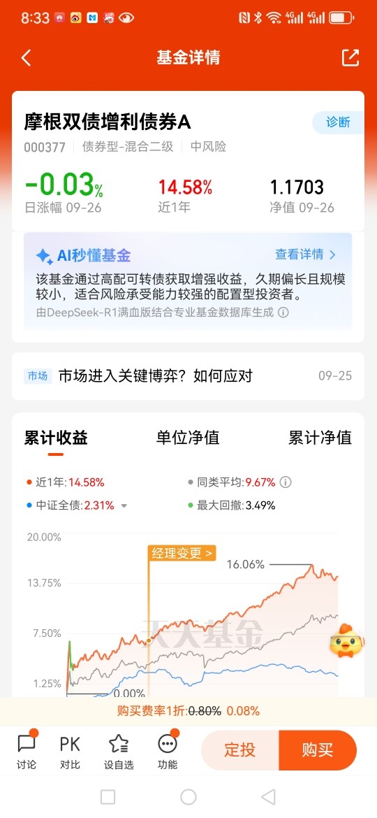 我的解法:用“混合债基”增强收益弹性!$摩根双债增利债券C$ 采用双债策略布局信用债和可转债,近一年收益近15个点,可以多加关注。