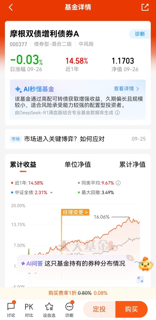 总的来说,摩根双债增利债券基金通过“信用债打底+可转债增强”的策略,在风险与收益之间力求平衡。它或许不能让你一夜暴富,但那种“稳稳赚钱+偶尔小惊喜”的特质,对于希望在震荡市中寻求安心的投资者而言,是一个颇具吸引力的选择。@摩根资产管理
