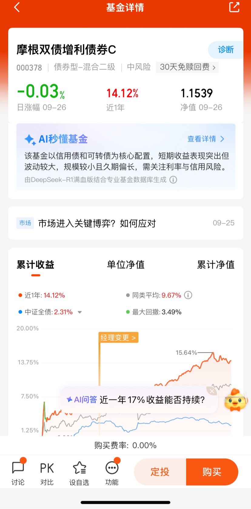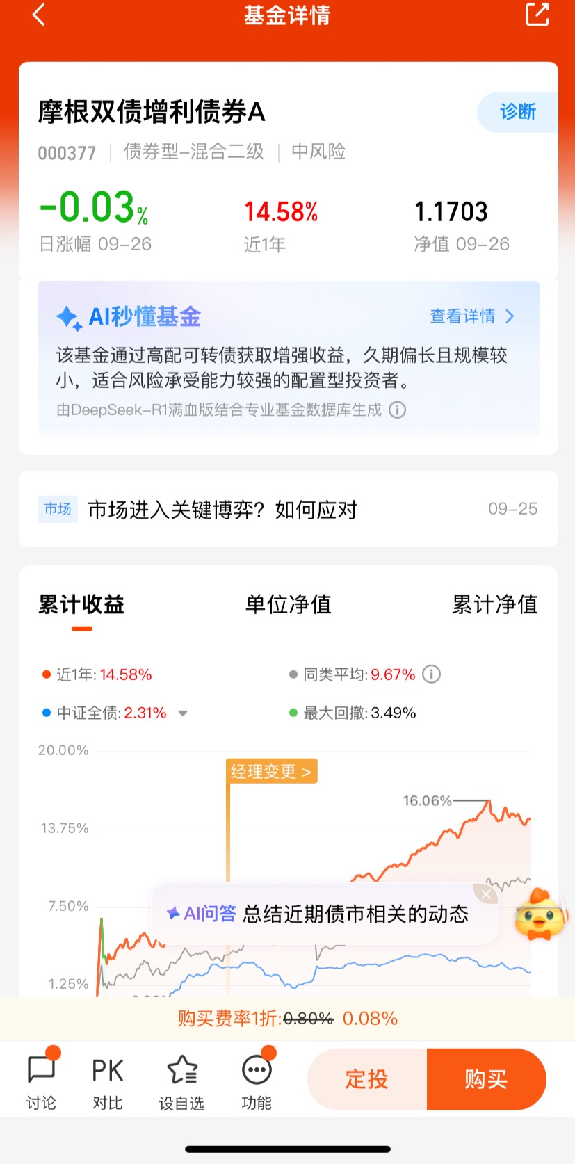 $摩根双债增利债券C$ $摩根双债增利债券D$ $摩根双债增利债券A$ 摩根双债增利债券基金(A类代码000377,C类代码000378)作为一款采用“信用债打底+可转债增强”双债策略的混合二级债基,凭借其独特的风险收益平衡特性,在当前市场环境下展现出显著的投资价值。