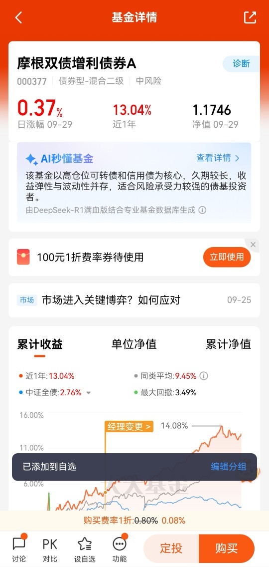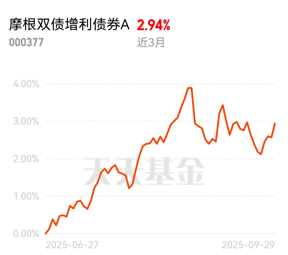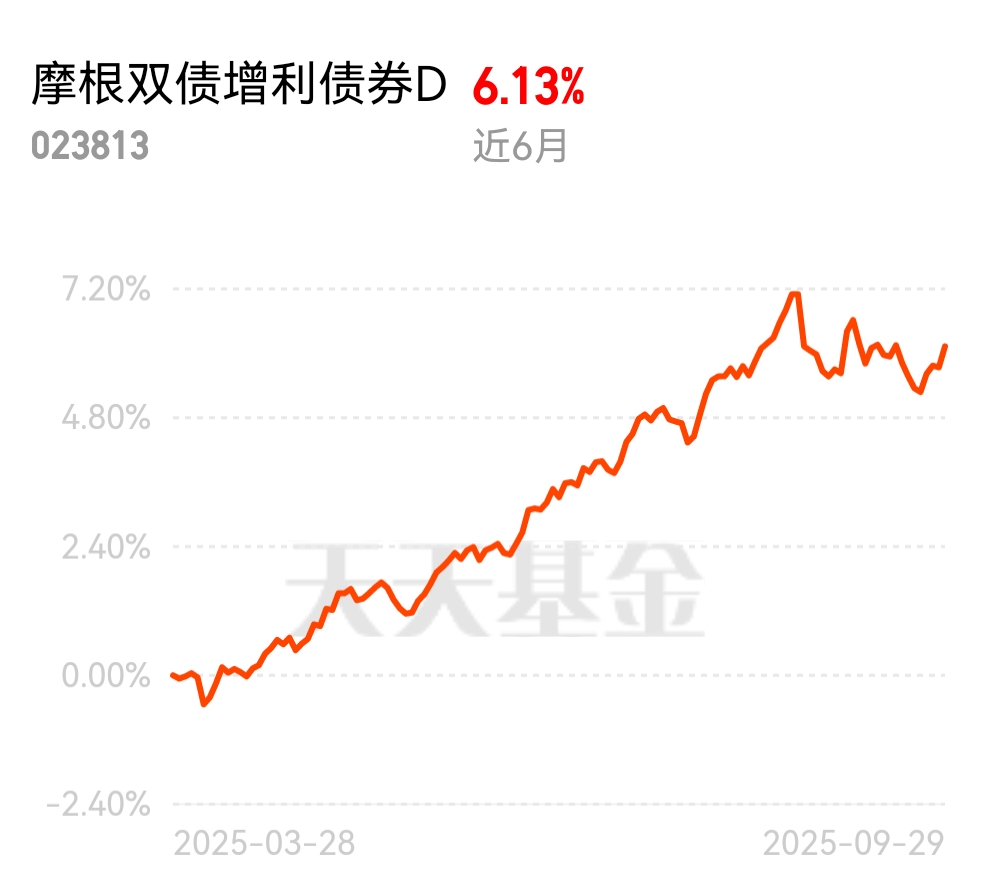 摩根双债增利债券A000377/C000378/D023813,以信用债打底,以可转债进攻。精选中高等级信用债,风险可控,有效提高收益回报;可转债具有股债切换属性,在合适的时机切换相应的股票,有利于及时把握有利行情,从而增厚收益,而当行情消减、处于弱势时,也能够及时转为债券去做防守,降低回撤,减小损失,做到进可攻退可守。在这两种债券的结合下,摩根双债增利债券不说近一年的收益,近半年的收益达到了6%,这个收益表现对于稳健投资者而言还是非常亮眼的,而对于追求高风险高回报的投资者而言,也是不错的底仓配置之选,毕竟先前的投资教训历历在目,风险控制很有必要。
